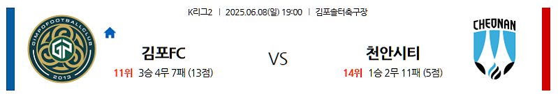 ▶ 2025년 6월 8일 19:00 (한국 시각) | 김포솔터축구장 (Gimpo Solteo Football Park) | K리그2 | 김포FC vs 천안시티FC