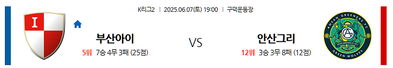 ▶ 2025년 6월 7일 19:00 (한국 시각) | 부산 아시아드 주경기장 | K리그2 | 부산 아이파크 vs 안산 그리너스